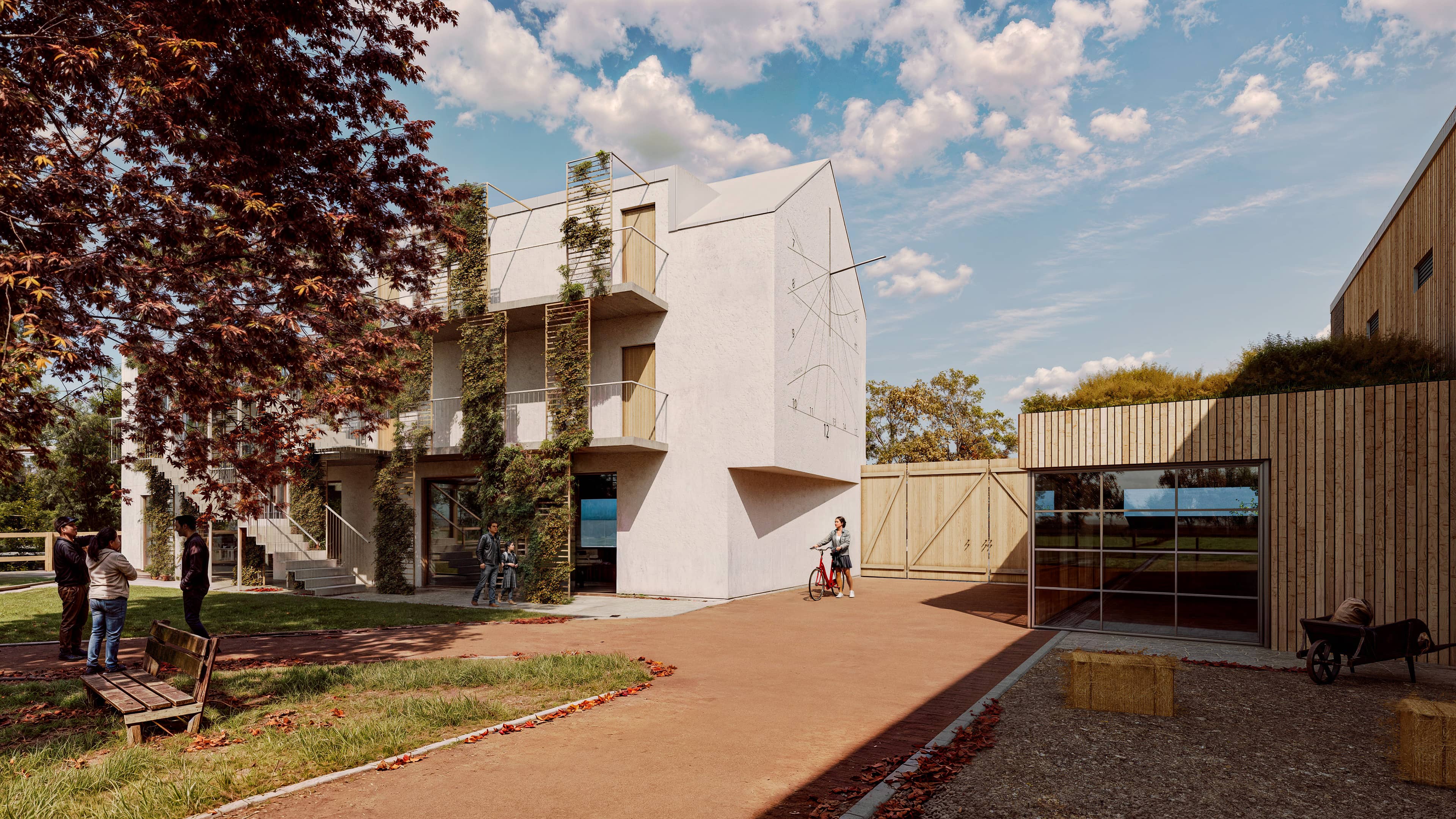 Klášterní Dvorec je moderní projekt ekologické farmy navazující na historický charakter místa obce. Přináší citlivé řešení umístění hospodářského stavení a stájí přes nízkonákladové bydlení až po konferenční prostory pro nízkoprahové aktivity ekofarmy.